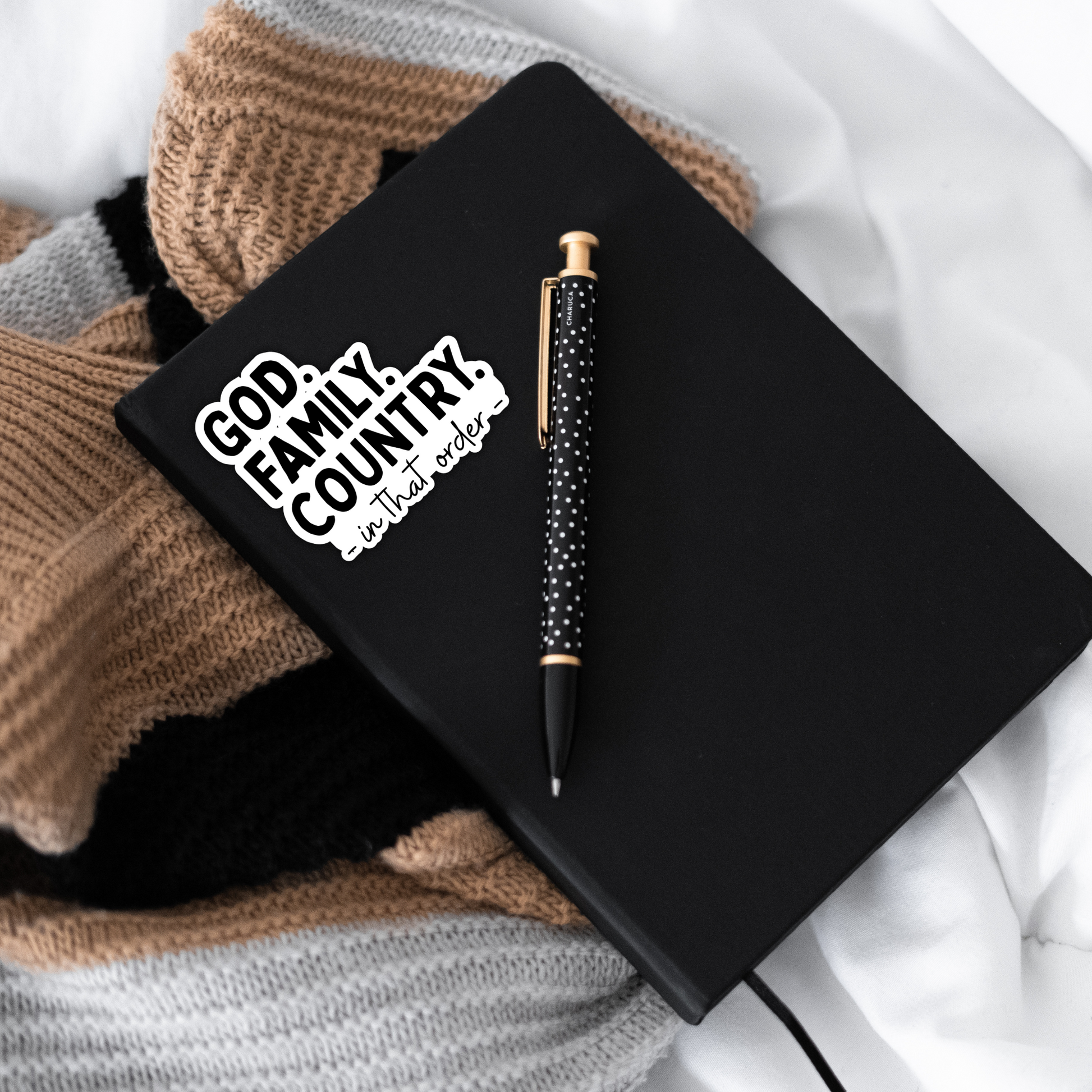 We created this sticker in honor of Charlie Kirk to remind us to always prioritize God, family and country - in that order.